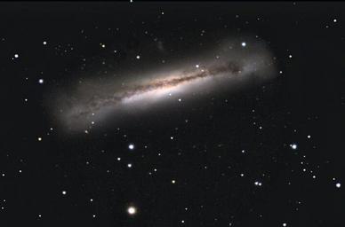 Keywords: NGC3628 Zoom.jpg en NGC3628 Spiral Galaxy in Leo 11H20' +13°36' At 35 000 000 yl distant this galaxy belong to the M66 - M65 group a huge dust band is twisted because of attractions forces between them and dark it 80'Luminance - 20'RGB- Bin 2X2 - STL11K - C14 Own Fryns 04/10/08 NGC 3628 |