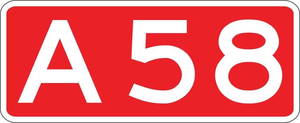 Keywords: NL-A58.svg Sign of A58 in the Netherlands Own 2011-07-19 Rl91 Diagrams of motorway number signs of the Netherlands A58 Rijksweg 58