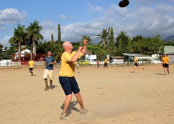 Keywords: NMCB 3 Pacific region deployment 130830-N-ZZ999-002.jpg en Construction Electrician 1st Class Colby Wightman from Naval Mobile Construction Battalion NMCB 3's Timor-Leste Civic Construction Action Detail CCAD plays Frisbee with local Timorese children during a daylong sports exchange with the local community Seabees were joined by sailors from USS Denver LPD 9 who participated in the sports exchange during a four-day port visit to East Timor The CCAD's mission is to execute engineering civic assistance projects conduct formal training with the host nation and perform community relations events to help enhance shared capabilities and improve the country's social welfare One of the first battalions commissioned during World War II NMCB 3's legacy stands strong in its ability to build and fight anywhere in the world as either a full battalion or as a group of autonomous detachments simultaneously completing critical engineering and construction missions For this deployment NMCB 3 has split into 9 details to perform critical construction projects in remote island areas such as Timor-Leste Tonga Cambodia and the Philippines The teams will also conduct operations in Atsugi Yokosuka and Okinawa Japan; Chinhae Republic of Korea and China Lake Calif The naval construction force is a vital component of the U S maritime strategy They provide deployable battalions capable of providing disaster preparation and recovery support humanitarian assistance and combat operations support NMCB 3 provides combatant commanders and Navy component commanders with combat-ready warfighters capable of general engineering construction and limited combat engineering across the full range of military operations U S Navy photo by Steelworker 3rd Class Calvin Johnson/RELEASED 2013-08-30 Petty Officer 1st Class Chris Fahey https //www dvidshub net/image/1010263 130830-N-ZZ999-002 2013-09-05 02 13 DILI TL PD-USGov-Military-Navy Naval Mobile Construction Battalion 3 USS Denver LPD-9 Images from DoD uploaded by Fæ |