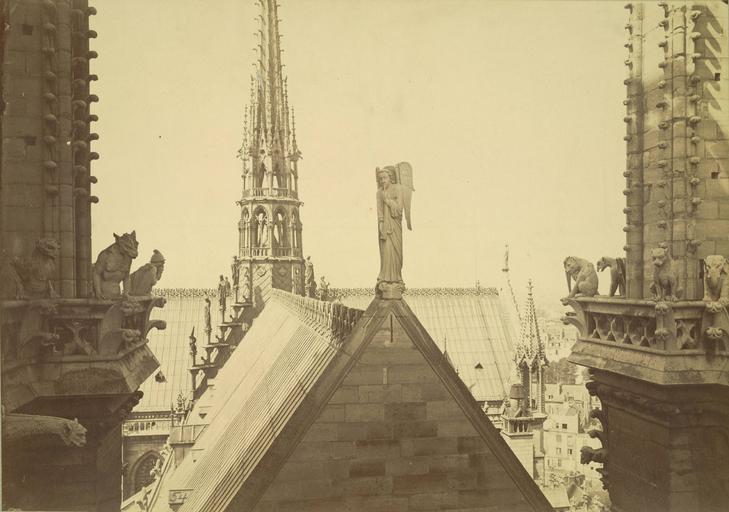 Keywords: Notre Dame de Paris. View from Tower with Chimeras and Gargoyles.jpg <b>Collection</b> A D White Architectural Photographs Cornell University Library Accession Number 15/5/3090 01425 <b>Title</b> Notre Dame de Paris View from Tower with Chimeras and Gargoyles Architect Eugene-Emanuel Viollet-le-Duc French 1814-1879 Sculpture Date 1845-1868 Photograph date ca 1865-ca 1886 <b>Location</b> Europe France; Paris <b>Materials</b> albumen print Image 10 4331 x 14 8425 in ; 26 5 x 37 7 cm <b>Style</b> Gothic Revival <b>Provenance</b> Gift of Andrew Dickson White <b>Persistent URI</b> <a href http //hdl handle net/1813 001/5tmz rel nofollow >http //hdl handle net/1813 001/5tmz</a> There are no known copyright restrictions on this image The digital file is owned by the Cornell University Library which is making it freely available with the request that when possible the Library be credited as its source We had some help with the geocoding from <a href http //developer yahoo com/ rel nofollow >Web Services by Yahoo </a> Flickr http //flickr com/photos/30515687 N05/3485962371 Notre Dame de Paris View from Tower with Chimeras and Gargoyles 1865-01-01 00 00 00 http //www flickr com/people/30515687 N05 Cornell University Library User Flickr upload bot/upload-pd 07 43 23 October 2012 UTC Paris 16 PD-Old Roofs of Notre-Dame de Paris Gargoyles of Notre-Dame de Paris 1886 in Paris Exterior sculptures of Notre-Dame de Paris |