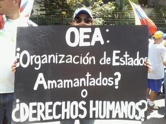 Keywords: OAS protest sign.jpg en An opposition protester holding a sign criticizing the OAS saying OAS Organization of Breastfed States or Human Rights es Una manifestante opositora con una pancarta criticando a la OEA OEA ¿Organización de Estados Amamantados o ¿Derechos Humanos 2014-03-16 13 10 53 own Jamez42 cc-zero Uploaded with UploadWizard Banners and signs at demonstrations and protests opposing Chavismo and Nicolas Maduro governmentDemonstrations and protests in Venezuela in 2014 |