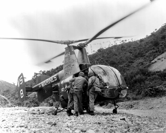 Keywords: OH-43D Huskie VMO-2 Korea 1960.jpeg U S Marines from A Company 1st Battalion 5th Marine Regiment talk with a pilot from Marine observation squadron VMO-2 before he makes a reconnaissance flight in a Kaman HOK-1 Huskie helicopter BuNo 129827 during operation Seahawk in South Korea on 1 June 1960 Operation Seahawk was a combined amphibious landing with South Korean forces in June 1960 The HOK-1 129827 was redesignated OH-43D in 1962 and flew with the civil registry N5172Q after its military service http //www defenseimagery mil U S DefenseImagery photo VIRIN http //www dodmedia osd mil/DVIC_View/Still_Details cfm SDAN HMSN9806925 JPGPath /Assets/1986/Navy/HM-SN-98-06925 JPG HM-SN-98-06925 U S National Archives file No 127-GK-13-A182678 1960-06-01 Photographer's Name Benninghoven PD-USGov Kaman HH-43 Huskie South Korea in the 1960s Marine Observation Squadron 2 |