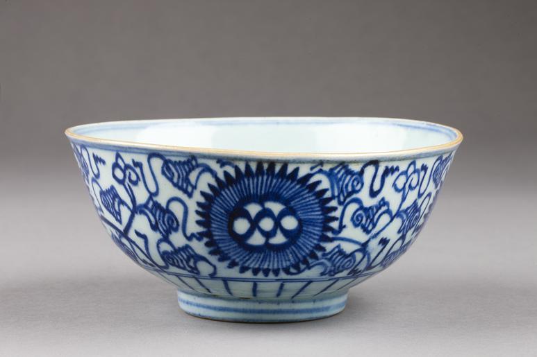 Keywords: Östasiatisk keramik. Skål - Hallwylska museet - 95775.tif LSH artwork sv SKÅL Klockformig Dekor i blått På utsidan en bred bård bestående av fyra solrosliknande blommor sammanbundna av slingrande skaft Bården begränsad av två ränder Nedtill tvärgående streck På insidan en kvist med blomma inom två koncentriska ringar På undersidan ett dekorerande märke inom två koncentriska ringar Tillverkad för export till den sydöst asiatiska marknaden <br/>Bowl for the South East Asian market original caption Östasiatisk keramik Skål <br/> Nyckelord skål keramik porslin century 18 size cm 7 5 8 2 HWY place of origin CN original filename hm_dig12170 14474 inventory number HWY XLVIII XI C b l 04 95775 CC-BY-SA Jens Mohr Porcelain bowls Chinese ceramics in the Hallwyl Museum Sweden Jens Mohr Media contributed by LSH 2014-11 |