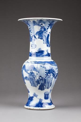 Keywords: Östasiatisk keramik. Vas - Hallwylska museet - 95645.tif LSH artwork sv VAS Nedre delen omvänt päronformig med utsvängd fot samt på låg fotkant övre delen cylindrisk med start utsvängd mynningskant På vardera delen en scen ur romanen San kuo chï yen i av Lo Kuan-Chung Underglasyrmålning Färgen delvis mycket mörk vackert blå vilket kännetecknar föremål avsedda för den inhemska marknaden Glasyren på flera ställen med bruna prickar och märken efter blåsor på fotkanten avslipad I godset på den bukiga delen ett tvärgående smalt sår tillverkningsfel original caption Östasiatisk keramik Vas <br/> Nyckelord vas keramik - 1662 1722 size cm 15 8 fot size cm 18 6 size cm 22 5 mynning size cm 45 5 HWY place of origin CN original filename hm_dig12146 14812 inventory number HWY XLVIII VIII B b f 01 95645 CC-BY-SA Jens Mohr Ceramics Vases Chinese ceramics in the Hallwyl Museum Sweden Urns Jens Mohr Media contributed by LSH dim-with multiple size templates Media contributed by LSH 2014-11 |