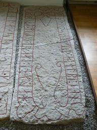 Keywords: OstergotlandFv1943;317B.JPG en Östergötlands runinskrifter Fv1943;317B Runic inscriptions of Östergötlands Fv1943;317B piece lid of a grave monument coffin of limestone from the 11th or 12th century Kept at Rådhuset in Skänninge Östergötland Sweden own Skvattram 2009-06-06 DEFAULTSORT ÖgFv1943;317B Runestones Östergötland Skänninge Archaeological monuments in Linköping Municipality |