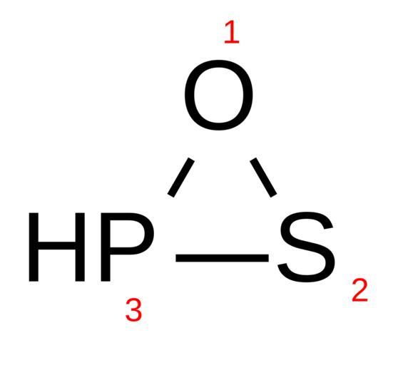 Keywords: Oxathiaphosphiran.svg en Structure of Oxathiaphosphiran with numbers de Strukturformel von Oxathiaphosphiran durchnummeriert own 2008-10-16 Orci Heterocyclic compounds with 1 ring