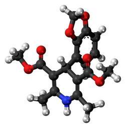 Keywords: Oxodipine-3D-balls.png Ball-and-stick model of the oxodipine molecule a calcium channel blocker Colour code 505050 Carbon C black<br> F0F0F0 Hydrogen H white<br> F51E1E Oxygen O red<br> 3C50FA Nitrogen N blue<br> 2011-06-13 own DS Visualizer Jynto talk Space-filling version cc-zero Images by Jynto Oxodipine |
