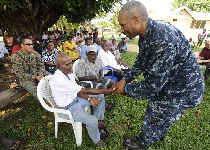 Keywords: Pacific Partnership commander meets oldest man in Hog Harbor 110504-N-YM863-554.jpg en Mission commander Capt Jesse Wilson meets the oldest man in Hog Harbor 95-year-old Ismael Tice who tells stories of his experience helping American soldiers during World War II on the island of Espiritu Santu Vanuatu Pacific Partnership is a five-month humanitarian assistance initiative that completed its mission in Tonga is in Vanuatu and will visit Papua New Guinea Timor Leste and the Federated States of Micronesia Photo by Petty Officer 1st Class Eli J Medellin 2011-05-04 Petty Officer 1st Class Eli Medellin https //www dvidshub net/image/398205 110504-N-YM863-554 2011-05-06 02 14 ESPIRITU SANTO VU PD-USGov-Military-Navy People of Vanuatu Relations of the United States and Vanuatu Images from DoD uploaded by Fæ |