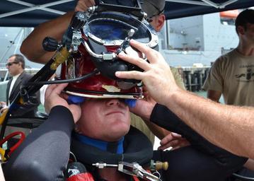 Keywords: PANAMAX 2011 mask on 110818-N-VA590-186.jpg en A Canadian diver attached to the combined Fleet Diving Unit team receives assistance donning a dive helmet prior to entering the water at the Vasco Nunez de Balboa naval base pier The Canadian divers are participating in PANAMAX 2011 for the first time PANAMAX 2011 is an annual multinational training exercise sponsored by U S Southern Command focusing on the security of the Panama Canal Involving 16 nations from the Western Hemisphere and more than 3 500 civil and military personnel the 12-day exercise takes place off the coasts of Panama and the United States including Fort Sam Houston Texas Miami Naval Station Mayport Fla and Stennis Miss among others Aug 15-26 2011-08-18 Petty Officer 1st Class Jose Lopez https //www dvidshub net/image/444727 110818-N-VA590-186 2011-08-18 17 54 PANAMA CIUDAD DE PA PD-USGov-Military-Navy Naval Station Mayport PANAMAX 2011 Images from DoD uploaded by Fæ |