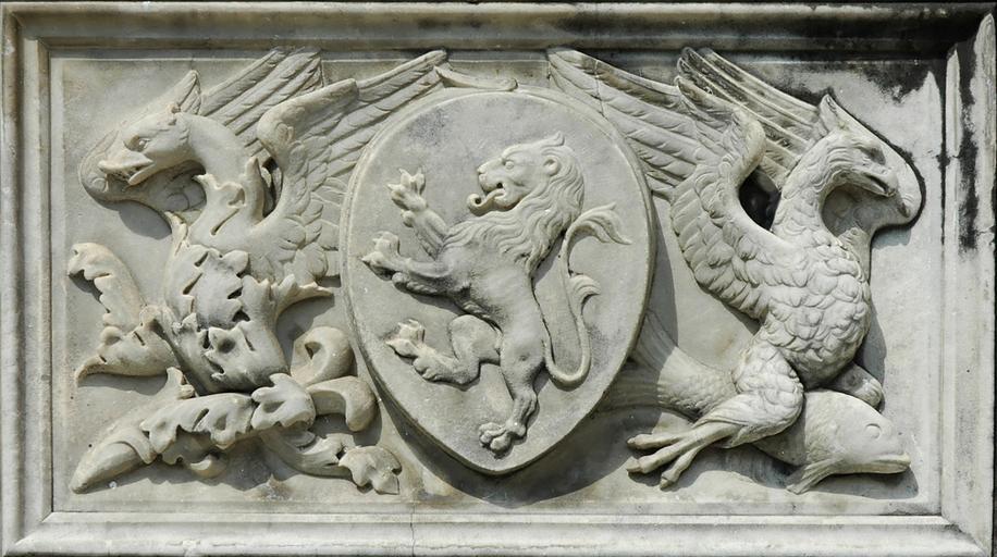 Keywords: Panel Fonte Gaia Siena n4.jpg A lion symbol of the city of Siena Panel of the Fonte Gaia Fountain of Joy piazza del Campo Siena The original was the work of Jacopo della Quercia ca 1367 “1438 Badly deteriorated by long exposure to the elements the fountain was entirely replaced in 1868 by a copy made by neo-Renaissance sculptor Tito Sarrocchi 1824 “1900 Lion symbolisant la ville de Sienne Panneau de la Fonte Gaia Fontaine de la joie sur la piazza del Campo de Sienne Très abĂ®mĂ©e par sa longue exposition aux Ă©lĂ©ments la fontaine a Ă©tĂ© remplacĂ©e dans son intĂ©gralitĂ© en 1868 par une copie du sculpteur puriste Tito Sarrocchi 1824-1900 own Jastrow 2005 Public Domain Fonte Gaia Siena Reliefs of coats of arms in Siena Lions rampant in heraldry Coats of arms of Siena Tito Sarrocchi