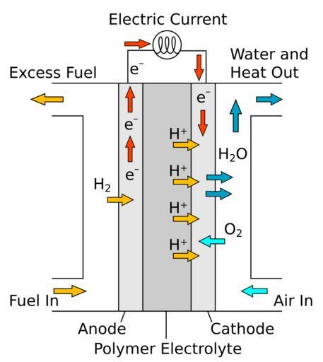 Keywords: PEM fuel cell.svg en Diagram of a Proton exchange membrane fuel cell it Schema di una Pila a combustibile con membrana a scambio protonico own derived from w Image Solid oxide fuel cell svg and w Image Fc diagram pem gif both public domain Albris 2010-10-23 Fuel cell diagrams |