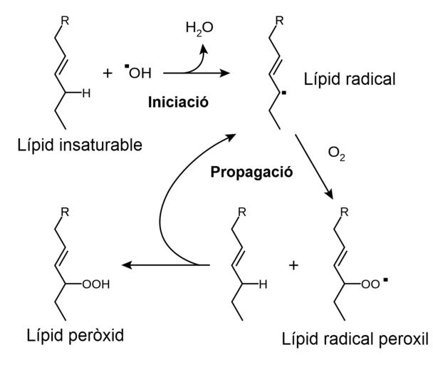 Keywords: Peroxidació de lípids.png Peroxidació de lípids lipid peroxidation diagram in Catalan 2011-12-23 own JaumeBG <gallery> File Peroxidació de lípids png language ca File Lipid peroxidation svg language en File Lipid peroxidation-es svg language es File Lipid peroxidation-it png language it </gallery> cc-zero Biology diagrams in Catalan Lipids Organic redox reactions |