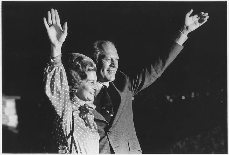 Keywords: Photograph President Gerald Ford and First Lady Betty Ford Waving to the Crowd During Independence Day Ceremonies at... - NARA - 186812.tif This photograph depicts President Gerald R Ford and Mrs Betty Ford arm in arm General notes 186812 Local identifier GRF-WHPO-A5373 20 President 1974-1977 Ford White House Photographic Office 1974 - 1977 Kennerly David Hume 1947- Photographer 1312484 <br /> Institution Gerald R Ford Presidential Library Gerald R Ford Library NLGRF 1000 Beal Avenue Ann Arbor MI 48109-2114 1975-07-04 Record group Collection GRF-WHPO White House Photographic Office Collection Ford Administration 12/06/1973 - 01/20/1977 Record group ARC 1136 Gerald R Ford White House Photographs compiled 08/09/1974 - 01/20/1977 Series ARC 1756311 File unit File unit ARC Variant control numbers NAIL Control Number NLF-WHPO-A-A5373 20 yes Other versions Gerald R Ford Presidential Library and Museum-cooperation PD-USGov 1975 in Maryland Gerald Ford in 1975 Betty and Gerald Ford Hand waving Fourth of July Gerald R Ford Presidential Library and Museum series Gerald R Ford White House Photographs compiled 08/09/1974 - 01/20/1977 |