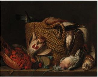 Keywords: Pieter Andreas Rijsbrack - A pheasant, pigeon, owl, and a basket with a partridge, duck, lapwing and woodcock on a ledge.jpg Artwork creator Pieter Andreas Rijsbrack en A pheasant pigeon owl and a basket with a partridge duck lapwing and woodcock on a ledge 1st half of 18th century http //www christies com/lotfinder/lot/peter-andreas-rysbrack-a-pheasant-pigeon-owl-1756224-details aspx from searchresults intObjectID 1756224 sid ca095b9f-5e58-4139-a960-0fb4fcba5746 Oil canvas cm 76 2 96 5 Sold by Christie's on 19 April 2000 in London as lot 293 signed 'PA Rysbrack' PA linked lower right Other versions PD-old-100 Still life paintings by Pieter Andreas Rijsbrack |