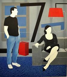 Keywords: pop art artistic artistry abstract man woman concept inside interior couch