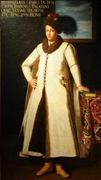 Keywords: Portret Stanisława Tęczyńskiego.jpg Painting Creator Tommaso Dolabella title Portrait of Stanisław Tęczyński Portret Stanisława Tęczyńskiego 1633-1634 Oil on canvas cm 195 108 Institution Wawel Royal Castle A portrait of a Kraków voivode the last male representative of his family who died at the age of 23 From the collection of the Potocki family in Krzeszowice Przemysław Mrozowski Andrzej Rottermund 2009 Uroda portretu Polska Od Kobera do Witkacego The Beauty of a Portrait Poland from Kober to Witkacy Arx Regia ISBN 978-83-7022-182-9 text upper left PD-Art other versions <gallery>Tommaso Dolabella 001 jpg</gallery> PD-old-100 Tommaso Dolabella Polish paintings in the Wawel Castle Stanisław Tęczyński 1633 oil on canvas paintings 1634 oil on canvas paintings 1633 portrait paintings Male 1634 portrait paintings Male 17th-century oil on canvas paintings in Poland 17th-century oil portraits of standing men at full length in national costumes 1633 Feathered headdresses in art male Fur headgear in art Fur linings in art Male shoes in portrait paintings Male fur clothing in art National costumes of Poland in 17th century portrait paintings Paintings with descriptive text on the artwork Portrait paintings of men holding books 1633 Portrait paintings with Spanish composition Portraits with window at the background Sable clothing in art Sarmatian portrait Fur fashion in 1633 |