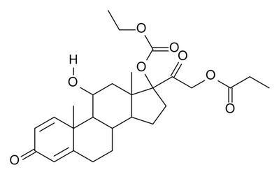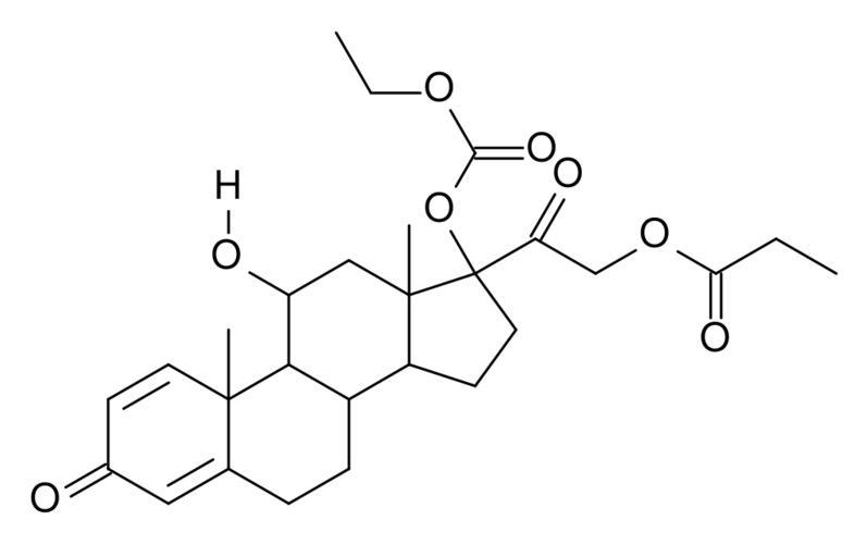 Keywords: Prednicarbate.svg chemical structure of Prednicarbate made using BKchem Own 2007-06-03 Tim Q Wells 3-Oxo-steroids