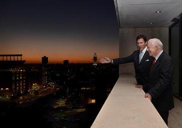 Keywords: President Carter at the LBJ Library.jpeg 30 284724 -97 727648 en LBJ Library Director Mark K Updegrove shares the beautiful view of the University of Texas and the Austin skyline with President Jimmy Carter on the balcony of the LBJ Library 2011-02-15 http //farm6 staticflickr com/5176/5456561709_5bdd3c2092_o jpg David Valdez PD-USGov Uploaded with UploadWizard President Jimmy Carter Mark Updegrove Presidents of the United States |
