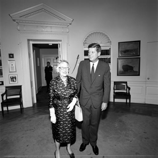Keywords: u.s. national archives usnationalarchives jfk presidential library jfkpresidentiallibrary white house whitehouse jfk john kennedy blackandwhite people monochrome black and white Original Caption: President John F. Kennedy with Newspaper Publisher We are looking for your help in identifying unknown people in our White House Photographs collection. If you have any information about this photograph, please post a comment, including any relevant sources, for the catalogers at the John F. Kennedy Presidential Library. Thank you! Local Identifier: JFKWHP-ST-235-3-62 Created By: President (1961-1963 : Kennedy). Office of the Naval Aide to the President. (1961 - 1963) From: President (1963-1969 : Johnson). White House Photograph Office. (1963 - 1969) Contact: John F. Kennedy Library (LP-JFK), Columbia Point Boston, MA 02125-3398 Phone: 617-514-1600 Fax: 617-514-1652 Email: kennedy.library@nara.gov Production Dates: 5/28/1962 Scope and Content Note: In this photograph, President John F. Kennedy stands with an unidentified woman during a visit with women newspaper publishers. Special Assistant to the President, Kenneth P. O’Donnell, stands in background (through doorway), Oval Office, White House, Washington, D.C. Persistent URL: JFK Library URL: www.jfklibrary.org/Asset-Viewer/Archives/JFKWHP-ST-235-3-... Access Restrictions: Unrestricted Use Restrictions: Unrestricted Original Caption: President John F. Kennedy with Newspaper Publisher We are looking for your help in identifying unknown people in our White House Photographs collection. If you have any information about this photograph, please post a comment, including any relevant sources, for the catalogers at the John F. Kennedy Presidential Library. Thank you! Local Identifier: JFKWHP-ST-235-3-62 Created By: President (1961-1963 : Kennedy). Office of the Naval Aide to the President. (1961 - 1963) From: President (1963-1969 : Johnson). White House Photograph Office. (1963 - 1969) Contact: John F. Kennedy Library (LP-JFK), Columbia Point Boston, MA 02125-3398 Phone: 617-514-1600 Fax: 617-514-1652 Email: kennedy.library@nara.gov Production Dates: 5/28/1962 Scope and Content Note: In this photograph, President John F. Kennedy stands with an unidentified woman during a visit with women newspaper publishers. Special Assistant to the President, Kenneth P. O’Donnell, stands in background (through doorway), Oval Office, White House, Washington, D.C. Persistent URL: JFK Library URL: www.jfklibrary.org/Asset-Viewer/Archives/JFKWHP-ST-235-3-... Access Restrictions: Unrestricted Use Restrictions: Unrestricted |