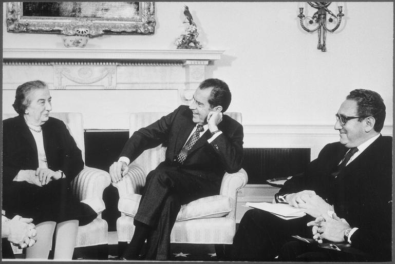 Keywords: President Nixon, Henry Kissinger and Israeli Prime Minister Golda Meir, meeting in the Oval Office - NARA - 194491.tif Scope and content Pictured Golda Meir Richard M Nixon Henry A Kissinger Subject Heads of State - Israel General notes 194491 Local identifier NLRN-WHPO-E0354-15A General Services Administration National Archives and Records Service Office of Presidential Libraries Office of Presidential Papers 01/20/1969 - ca 12/1974 Most Recent <br /> President 1969-1974 Nixon White House Photo Office 1969 - 1974 Most Recent NARA-Author Atkins Oliver F 1916-1977 Photographer 8451334 <br /> Richard Nixon Library NLRN 18001 Yorba Linda Boulevard Yorba Linda CA 92886 1973-03-01 Record group Collection RN-WHPO White House Photo Office Collection Nixon Administration 01/20/1969 - 08/09/1974 Record group ARC 1179 Nixon White House Photographs compiled 01/20/1969 - 08/09/1974 documenting the period 08/08/1968 - 08/09/1974 Series ARC 194277 File unit File unit ARC Variant control numbers NAIL Control Number NLNP-WHPO-MPF-E0354 15A yes Other versions NARA-cooperation PD-USGov Golda Meir Richard Nixon with national leaders Richard Nixon in the Oval Office Henry Kissinger Photographs by Ollie Atkins |