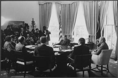 Keywords: President Nixon meeting with economic advisors and Cabinet members - NARA - 194579.tif Scope and content Pictured Clockwise from President Nixon George P Shultz James T Lynn Alexander M Haig Jr Roy L Ash Herbert Stein William E Simon Subject Press Conference General notes 194579 Local identifier NLRN-WHPO-E2729-07 General Services Administration National Archives and Records Service Office of Presidential Libraries Office of Presidential Papers 01/20/1969 - ca 12/1974 Most Recent <br /> President 1969-1974 Nixon White House Photo Office 1969 - 1974 Most Recent NARA-Author Schumacher Karl H Photographer 8451339 <br /> Richard Nixon Library NLRN 18001 Yorba Linda Boulevard Yorba Linda CA 92886 1974-05-07 Record group Collection RN-WHPO White House Photo Office Collection Nixon Administration 01/20/1969 - 08/09/1974 Record group ARC 1179 Nixon White House Photographs compiled 01/20/1969 - 08/09/1974 documenting the period 08/08/1968 - 08/09/1974 Series ARC 194277 File unit File unit ARC Variant control numbers NAIL Control Number NLNP-WHPO-MPF-E2729 07 yes Other versions NARA-cooperation PD-USGov May 1974 in the United States Richard Nixon in 1974 Richard Nixon with people George P Shultz James Thomas Lynn Alexander Haig |