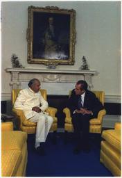 Keywords: President Nixon meeting with President Bhutto of Pakistan - NARA - 194542.tif Scope and content Pictured Zulfikar Ali Bhutto Richard M Nixon Subject Heads of State - Pakistan General notes 194542 Local identifier NLRN-WHPO-E1480C-27 General Services Administration National Archives and Records Service Office of Presidential Libraries Office of Presidential Papers 01/20/1969 - ca 12/1974 Most Recent <br /> President 1969-1974 Nixon White House Photo Office 1969 - 1974 Most Recent NARA-Author Knudsen Robert L Robert LeRoy 1929-1989 Photographer 8451337 <br /> Richard Nixon Library NLRN 18001 Yorba Linda Boulevard Yorba Linda CA 92886 1973-09-18 Record group Collection RN-WHPO White House Photo Office Collection Nixon Administration 01/20/1969 - 08/09/1974 Record group ARC 1179 Nixon White House Photographs compiled 01/20/1969 - 08/09/1974 documenting the period 08/08/1968 - 08/09/1974 Series ARC 194277 File unit File unit ARC Variant control numbers NAIL Control Number NLNP-WHPO-MPF-E1480C 27 yes Other versions NARA-cooperation PD-USGov Zulfikar Ali Bhutto September 1973 in the United States Richard Nixon in 1973 Richard Nixon with national leaders Relations of Pakistan and the United States Richard Nixon in the Oval Office |
