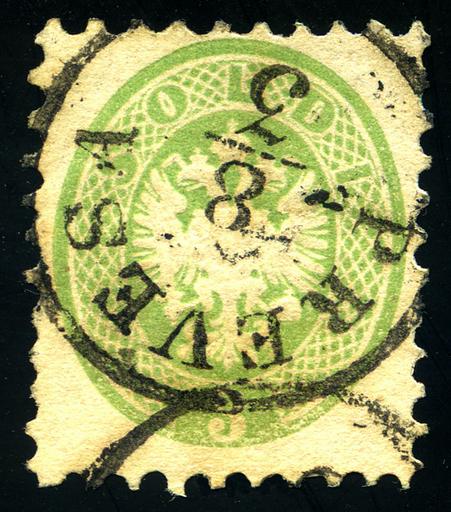 Keywords: Prevesa Austrian 1 03 sld 1864.jpg Lombardy and Venice for usage by Austrian Post Offices in the Levant 3 soldi green used in the Post Office of Preveza Catalogue Sc 21 Mi V20 green Type of cancellation N-G 1 Mueller type RS-f N°41a 50 points Date of cancellation 8 March around 1865 Λομβαρδοβενετίας για χρήση σε Αυστριακά Ταχυδρομικά Γραφεία της Ανατολής 3 σόλντι ράσινο σφραγισμένα στο ταχυδρομικό γραφείο της Πρέβεζας Κατάλογος Sc 21 Mi V20 Πράσινο Τύ ος σφραγίδας N-G 1 Mueller RS-f N°41a 50 βαθμοί Ημερομηνία σφραγίδας 8 αρτίου ερί το 1865 Stamp issued in 1864 en Nikos D Karabelas stamp collection Preveza Greece el Συλλογή γραμματοσήμων ίκου Δ Καράμ ελα Πρέβεζα Institution Actia Nicopolis Austro-Hungarian postal authorities PD-old PD-US Template Cc-by-4 0 DEFAULTSORT Prevesa Austrian Type 1 Stamps of Austria for the Ottoman Empire Postmarks of Greece Postal history of Preveza 1863 stamps of Austria Preveza Actia Nicopolis Foundation Stamp Collection Stamps of Austrian post offices abroad |