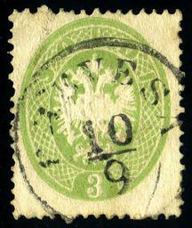 Keywords: Prevesa Austrian 1 03 sld 1863.jpg Lombardy and Venice for usage by Austrian Post Offices in the Levant 3 soldi green used in the Post Office of Preveza Extremely rare Catalogue Sc 16 Mi V 15 green Type of cancellation N-G 1 Mueller type RS-f N°41a 50 points Date of cancellation 10 September around 1865 el Γραμματόσημο της Λομβαρδοβενετίας για χρήση σε Αυστριακά Ταχυδρομικά Γραφεία της Ανατολής 3 σόλντι ράσινο σφραγισμένο στο ταχυδρομικό γραφείο της Πρέβεζας Εξαιρετικά σ άνιο Κατάλογος Sc 16 Mi V 15 Πράσινο Τύ ος σφραγίδας N-G 1 Mueller RS-f N°41a 50 βαθμοί Ημερομηνία σφραγίδας 10 Σε τεμβρίου ερί το 1865 Stamp issued in 1863 en Nikos D Karabelas stamp collection Preveza Greece el Συλλογή γραμματοσήμων ίκου Δ Καράμ ελα Πρέβεζα Institution Actia Nicopolis Austro-Hungarian postal authorities PD-old PD-US Template Cc-by-4 0 DEFAULTSORT Prevesa Austrian Type 1 Stamps of Austria for the Ottoman Empire Postmarks of Greece Postal history of Preveza 1863 stamps of Austria Preveza Actia Nicopolis Foundation Stamp Collection Stamps of Austrian post offices abroad |
