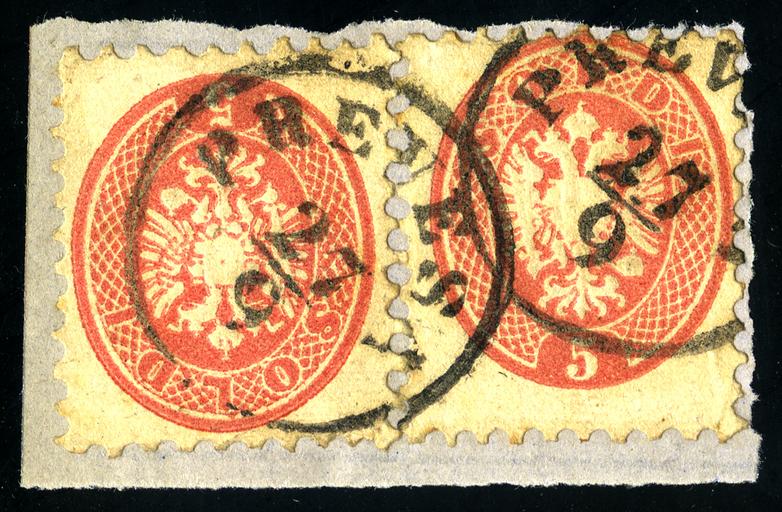 Keywords: Prevesa Austrian 1 05 sld 1867.jpg Lombardy and Venice for usage by Austrian Post Offices in the Levant 2 x 5 soldi rose used in the Post Office of Preveza Catalogue Sc 22 Mi V 21 rose Type of cancellation N-G 1 Mueller type RS-f N°41a 50 points Date of cancellation 27 September around 1865 Λομβαρδοβενετίας για χρήση σε Αυστριακά Ταχυδρομικά Γραφεία της Ανατολής 2 x 5 σόλντι τριανταφυλλί σφραγισμένα στο ταχυδρομικό γραφείο της Πρέβεζας Κατάλογος Sc 22 Mi V 21 Τριανταφυλλί Τύ ος σφραγίδας N-G 1 Mueller RS-f N°41a 50 βαθμοί Ημερομηνία σφραγίδας 27 Σε τεμβρίου ερί το 1865 Stamp issued in 1864 en Nikos D Karabelas stamp collection Preveza Greece el Συλλογή γραμματοσήμων ίκου Δ Καράμ ελα Πρέβεζα Institution Actia Nicopolis Austro-Hungarian postal authorities PD-old PD-US Template Cc-by-4 0 DEFAULTSORT Prevesa Austrian Type 1 Stamps of Austria for the Ottoman Empire Postmarks of Greece Postal history of Preveza 1863 stamps of Austria Preveza Actia Nicopolis Foundation Stamp Collection Stamps of Austrian post offices abroad |