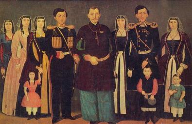 Keywords: Prince Mukhranbatoni. 1862.jpg Mukhran-batoni á ááá áá á áááá¨áá áᥠáŤá ááŁáŽá áá ááá˘á á á with his family Oil on canvas 89X129 cm Art Museum of Georgia Tbilisi compiled and introduced by Tamaz Sanikidze 1985 Aurora Art Publishers Leningrad Author 1862 PD-Art Art of Georgia Nobility of Georgia Georgian paintings in Art Museum of Georgia Chokha in art House of Mukhrani Oil paintings Bagrationi dynasty in art 1862 paintings 1862 in Georgia People of Georgia with chokha 19th-century family portraits Caucasus costumes in portrait paintings |