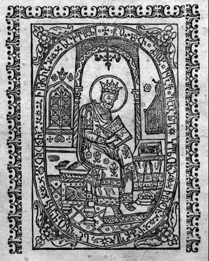 Keywords: Prophet David. Georgian Psalters (1711, Tbilisi).JPG Commonist en Prophet David from the Psalters printed in Georgian in Tbilisi in 1711 საქართველ ს პარლამე ტის ერ ვ ული ბიბლი თეკა ვახტა გ -ის სტამბის გამ ცემები 1709-1722 შემდგ დალი მაჩაიძე თბ 2009 1711 Author 1711 in Tbilisi King David writing psalms Asomtavruli letters PD-old-100 |