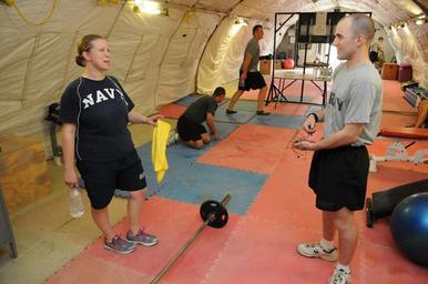 Keywords: PRT Farah physical fitness 130509-N-LR347-007.jpg en U S Navy Lt j g Laura Cook left and U S Army Spc Nkelo Kurtz right both assigned to the Provincial Reconstruction Team PRT Farah medical department talk before completing post-workout stretching on FOB Farah May 9 Soldiers and sailors assigned to PRT Farah train regularly to maintain high standards of physical fitness enhance mission readiness and improve quality of life PRT Farah's mission is to train advise and assist Afghan government leaders at the municipal district and provincial levels in Farah province Afghanistan Their civil military team is comprised of members of the U S Navy U S Army the U S Department of State and the U S Agency for International Development USAID U S Navy photo by Lt j g Matthew Stroup/released 2013-05-09 Lt j g Matthew Stroup https //www dvidshub net/image/928444 130509-N-LR347-007 2013-05-10 04 45 FORWARD OPERATING BASE FARAH AF PD-USGov-Military-Navy Forward Operating Base Farah United States Agency for International Development Images from DoD uploaded by Fæ |