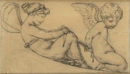 Keywords: Prudhon-amour et psyche-1810.jpg artwork Creator Pierre-Paul Prud'hon Amour et Psyché modèle du bras de fauteuil pour l ™ameublement de l ™Impératrice Marie-Louise Cupid and Psyche 1810 black chalk paper pencil cm 21 36 object history Passé en vente le 20 novembre 2016 à Paris chez Osenat lot 434 estimé 8 000 “ 10 000 ‚¬ -- Auparavant Collection Barra Blaisot 1794-1876 Paris Collection Aimé-Charles-Horace His de la Salle 1795-1878 Paris Lugt 1332 Collection Edmond et Jules de Goncourt Paris Lugt 1089 Leur vente Paris 15-17 février 1897 lot 243 Collection Doisteau Collection Jules Gerbeau Sa vente Drouot Paris 18 mai 1908 lot 114 Collection Léon Ferté Vente Deauville 29 août 1969 lot 73 repr Vente Artcurial Paris 9 avril 2008 lot 139 http //www osenat fr/html/fiche jsp id 6514590 np 1 lng fr npp 150 ordre aff 5 r Note de l'expert Le 15 août 1810 la ville de Paris fit présent à l ™impératrice Marie-Louise d ™un ensemble mobilier pour un cabinet de toilette composé d ™une psyché d ™une table-coiffeuse d ™une athénienne d ™un fauteuil d ™un candélabre et d ™un coffret Réalisés par Thomyre et Odiot en bois précieux agrémentés de décor de nacre et lapis-lazuli les meubles ruisselaient de guirlandes de fleurs de rinceaux et de figures symbolisant l ™amour sculptés en ronde-bosse ciselés en bronze doré ou vermeil Grâce au soutien de son ami Frochot préfet de la Seine Prud ™hon fut désigné pour fournir les dessins des parties allégoriques Nommé dès 1815 professeur de dessin de l ™impératrice il donna également le dessin du berceau du roi de Rome seul meuble subsistant de l ™ensemble Vienne Schatzkammer Le reste fut emporté par Marie-Louise à Parme puis démonté sur ses ordres en 1832 pendant l ™Ã©pidémie de choléra pour récupérer les parties précieuses Notre dessin est une étude pour les figures de Psyché et l ™Amour soutenant les bras du fauteuil les pieds représentant des cornes d ™abondance d ™où s ™Ã©chappent des fleurs voir Guiffrey p 371 no 993 Prud ™hon rompt ici avec la rigidité néoclassique de Percier retrouvant les courbes la grâce et le sentimentalisme du siècle précédent Taquins ses Psyché et l ™Amour sont plus proches des enfants bergers de Boucher que des grâces élancées de Dugourc Admiratif Jules de Goncourt qui posséda le dessin et le grava à l ™eau-forte sous le titre La Coiffeuse de Marie-Louise le décrit ainsi dans son journal « C ™est une accusation de lumière C ™est un dessin de soleil modelé avec des rayons La ligne extérieure y tremble comme une chose au jour » Journal 1er avril 1860 p 726 -- Expositions 1874 Paris École des Beaux-Arts Exposition des OEuvres de Prud ™hon no 398 1922 Paris Exposition P P Prud ™hon no 209 1933 Paris Exposition Goncourt no 338 -- Bibliographie E et J de Goncourt Prud ™hon étude contenant quatre dessins gravés à l ™eau-forte Paris Dentu 1861 p 32 repr Ch Clément Prud ™hon sa vie ses Å“uvres et sa correspondance Paris 1872 p 355 no 1 E de Goncourt Catalogue raisonné de l ™oeuvre peint dessiné et gravé de P P Prud ™hon Paris éd Rapilly 1876 p 217-218 E et J de Goncourt L ™art du XVIIIe siècle Paris 1882 p 429 repr P A Forest Pierre-Paul Prud ™hon peintre français Paris 1913 p 203 no 398 J Guiffrey L ™Å“uvre de P P Prud ™hon Paris éd Armand Colin 1924 no 994 p 371-372 other versions PD-old-100-1923 1823 DEFAULTSORT Prud'hon Pierre-Paul Pierre-Paul Prud'hon |