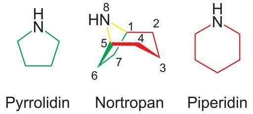Keywords: Pyrrolidin Tropan Piperidin.svg Vergleich der Strukturen von Pyrrolidin Nortropan und Piperidin Comparison of the structures of pyrrolidine nortropane and piperidine Comparaison des structures de la pyrrolidine du nortropane et de la pipéridine own 2007-04-07 NEUROtiker Own work all rights released Public domain Piperidine Pyrrolidine Tropane |