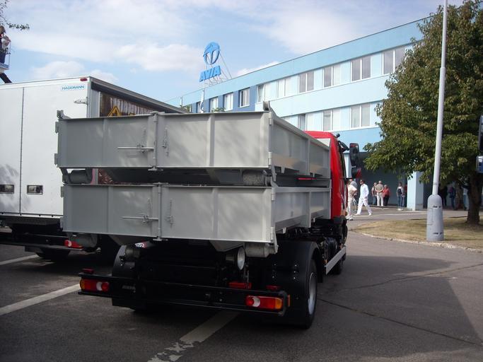 Keywords: Red truck with container01.jpg en Waste containers on AVIA truck cs Vanové kontejnery na nosiči AVIA own Leotard 2009-09-20 Waste management Taken with Nikon Coolpix L15
