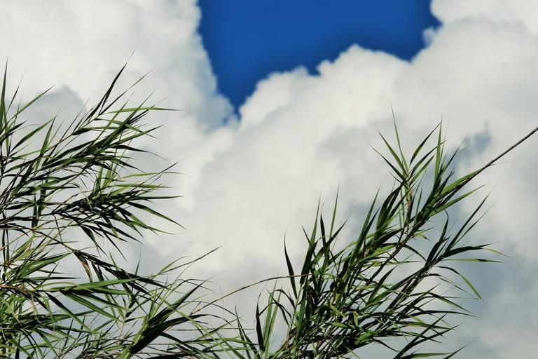 Keywords: reeds green bowing bending wind cloud white