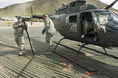 Keywords: Refuelers Keep Southwest Border Aviation in the Sky DVIDS57228.jpg en Finished refueling the OH-58 Kiowa Sep 8 Spc John Mix left of Hastings Mich with the Mich Army National Guard's Company E 3-238th Aviation Regiment and Alaska Army National Guard Warrant Officer Candidate Steven Ernst from Anchorage Alaska with Company E 1-207th Aviation Regiment both attached to Operation Jump Start-Arizona Task Force Tucson head back to finish work refueling tank pump units at the Forward Ammunition and Refueling Point at the U S Customs and Border Protection Border Patrol station in Ajo Ariz 2007-09-07 https //www dvidshub net/image/57228 57228 2007-09-14 15 20 AJO AZ US PD-USGov OH-58 Kiowa Alaska Army National Guard Images from DoD uploaded by Fæ |