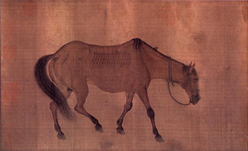 Keywords: Ren Renfa, Two Horses, detail.jpg Detail of Two Horses by Chinese artist and Yuan Dynasty loyalist Ren Renfa; a similar painting is Gong Kai's Emaciated Horse although Gong Kai's Emaciated Horse contains subtle message of political protest against the Yuan Dynasty while Ren's painting here simply represents a stalwart official who dutifully serves office takes nothing for himself and is void of corruption Handscroll ink and colors on silk 28 8 x 143 7 cm http //depts washington edu/chinaciv/painting/4schfigu htm Fu Xinian ed Zhongguo meishu quanji Huihua bian 5 Yuandai huihua Beijing Wenwu chubanshe 1989 pl 36 p 53 Collection of the National Palace Museum Beijing Yuan Dynasty 1271 1368 Ren Renfa 1254 1357 PD-old-100 100px Paintings of the Yuan Dynasty Renfa Two Horses PD China Thin horses Renfa Two Horses Paintings in the Palace Museum Renfa Two Horses Horses in art of China |