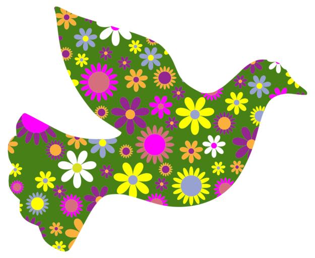 Keywords: retro floral flowers decorative ornamental art sign symbol dove bird peace flying flight