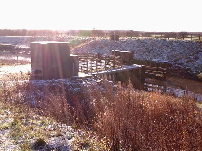 Keywords: Ribble Link 04c216.jpg The rising sector gate on the Ribble Link at SD 479 295 in Lea Marsh This is just south of the Lea Gate Hotel Blackpool Road about 5 km west of Preston Lancashire England and about 500 metres north of where the Ribble Link / Savick Brook enters the River Ribble At low tide the brook below this point and the Ribble itself are unnavigable because there is too little draught available At this time the sector gate is raised as in this photo to maintain a navigable depth of water between here and the sea lock about 600 metres upstream On the incoming tide once the water is level either side of the gate it is lowered to allow boats to pass Photo taken 2004 December 26 12 43 Roger W Haworth Ribble Link Water transport Lancashire Images by Roger W Haworth |