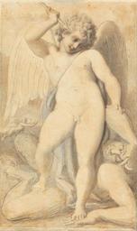 Keywords: Richard Cosway - Cupid Overpowering a Satyr - Google Art Project.jpg Google Art Project watercolor Devon 1742 London 1821 Richard male 2320990 Cosway British 1742 - 1821 /collection/yale-center-for-british-art/artwork/cupid-overpowering-a-satyr-richard-cosway/2441862/ Richard Cosway Artist /artist/richard-cosway/4129605/ 4129605 /collection/yale-center-for-british-art/ Yale Center for British Art 2305845 http //britishart yale edu/ 2/24/2012 12 19 36 AM /collection/yale-center-for-british-art/artwork/cupid-overpowering-a-satyr-richard-cosway/2441862/ 1757 undated satyr Cupid angels hooves animal components mythology cherubs putti men arrows wings costume accessories quivers historical subject Watercolor and graphite on thin smooth cream wove paper 368 2441862 False 1821 3/24/2012 10 14 16 PM YCBA/lido-TMS-7090 http //collections britishart yale edu/vufind/Record/1670821 Yale Center for British Art Gift of Mr and Mrs Stuart P Feld painting 1750 1830 Devon Creation w283 x h368 cm undated False 0 591796875 Item cupid-overpowering-a-satyr-richard-cosway Cupid Overpowering a Satyr c 283 Inscribed in graphite on mount upper left < 18/> ; in graphite upper right 33 in graphite lower right 66 ; inscribed in graphite verso lower left G A ; in graphite lower left 4962 Inscription _Marks Watermark on mount J Whatman Inscription _Signed_and_Dated Signed in graphite verso lower right Richard Cosway Allegorical Scene Not on View Watercolor and graphite on thin smooth cream wove paper satyr Cupid angels hooves animal components mythology cherubs putti men arrows wings costume accessories quivers historical subject special url_id gQExOT0NaaLy2g PD-old-100-1923 1821 Richard Cosway Google Art Project works by Richard Cosway Putti with animals |