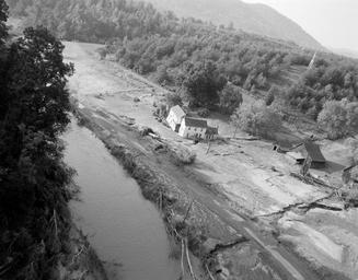 Keywords: richmond va usa hurricane camille hurricanecamille flood flooding damage natural disaster naturaldisaster virginia richmond va usa virginiarichmondvausa blackandwhite monochrome outdoor mountainside landscape black and white This aerial images was taken approximately two miles west of Rockfish (town) along Rt. 617. The Rockfish River flooded the surrounding low lands. In another Nelson County location, up to 27" of rain in four eight hours from Hurriacne Camille was recorded. No. 69-2133, Virginia Governor's Negative Collection, Library of Virginia. This aerial images was taken approximately two miles west of Rockfish (town) along Rt. 617. The Rockfish River flooded the surrounding low lands. In another Nelson County location, up to 27" of rain in four eight hours from Hurriacne Camille was recorded. No. 69-2133, Virginia Governor's Negative Collection, Library of Virginia. |