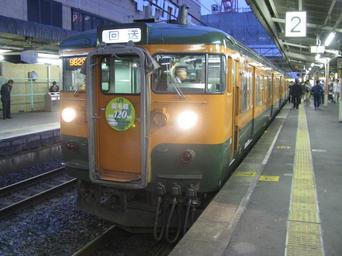 Keywords: Ryomo Line 120thAnniv Train Kumoha115-1035 Ageo 20091101.jpg Ryōmō Line at Ageo Station 臨時快 列車 両毛線120周年号 (桐生発 上尾ゆき 2009年11 1日のみ運転)) 上尾駅終 後 桐生方先頭車 クモハ115-1035 Photographed by Vantey 2009-11-01 Uploader; Vantey <gallery> File E231 and 115 Ageo 20091101 jpg File E231 and 115 Ageo 20091101 jpg File Railfans photographing at Ageo Station 20091101 jpg File Railfans photographing at Ageo Station 20091101 jpg </gallery> Taken with Canon PowerShot SX100 IS Files uploaded by Vantey JNR 115 JR East Ryōmō Line Rail transport events in Japan 2009 in rail transport in Japan 2009 events in Japan November 2009 in Japan 2009-11-01 Ageo Station Night in Saitama prefecture Number 120 on vehicles |