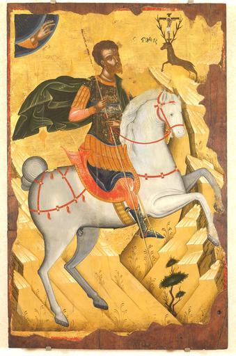 Keywords: S.Eustace (Cretan school, 16th c.).jpg Ο Άγιος Ευστάθιος αρχές 16ου αιώνα 80x126εκ άγνωστος Κρητικός ζωγράφος Ο άγιος ΕυΣΤΑΘΗΟΣ Ο άγιος Ευστάθιος εικονίζεται έφι ος με στρατιωτική ενδυμασία να κοιτάζει ψηλά στον βράχο το ελάφι ου έχει ανάμεσα στα κέρατά του τον Εσταυρωμένο Στην αριστερή ε άνω γωνία της εικόνας ροβάλλει το χέρι του Θεού ου ευλογεί Σύμφωνα με το βίο του ο άγιος ήταν ρωμαίος στρατηλάτης και ονομαζόταν Πλακίδας http //eib xanthi ilsp gr/gr/icons asp cursort iconTitle selectFieldValue vpage 3 early 16th century unidentified Cretan painter Icons of Saint Eustace Files uploaded by Shakko from various sources Cretan School Uniate and Catholic icons 16th-century icons of Greece Hand of God PD-old |
