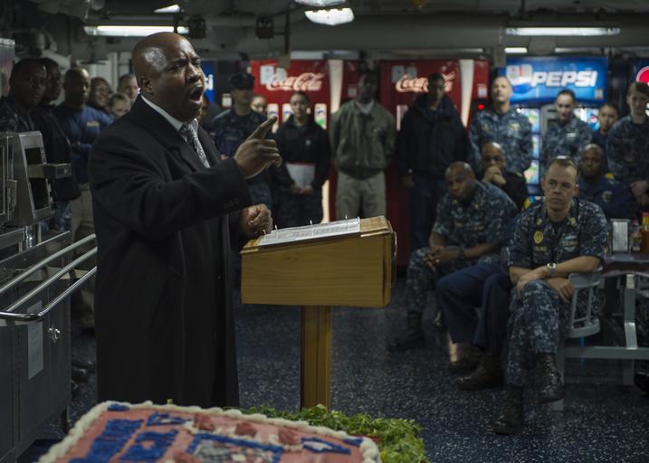 Keywords: Sailors commemorate Martin Luther King Jr. Day. (12106692124).jpg ARABIAN GULF Jan 19 2014 Aviation Boatswain's Mate Handling 3rd Class Jerrell Cunningham reenacts Dr Martin Luther King Jr 's I Have A Dream speech during a Dr Martin Luther King Jr Day ceremony aboard the aircraft carrier USS Harry S Truman CVN 75 Harry S Truman flagship for the Harry S Truman Carrier Strike Group is deployed to the U S 5th Fleet area of responsibility conducting maritime security operations supporting theater security cooperation efforts and supporting Operation Enduring Freedom U S Navy photo by Mass Communication Specialist 3rd Class Shane A Jackson/Released 140119-N-IG780-096 Join the conversation http //www navy mil/viewGallery asp www navy mil/viewGallery asp http //www facebook com/USNavy www facebook com/USNavy http //www twitter com/USNavy www twitter com/USNavy http //navylive dodlive mil navylive dodlive mil http //pinterest com pinterest com https //plus google com plus google com http //www flickr com/photos/usnavy/12106692124/ Sailors commemorate Martin Luther King Jr Day 2014-01-23 14 33 http //www flickr com/people/56594044 N06 Official U S Navy Page from United States of America MC3 Shane A Jackson/U S Navy U S Navy photo PD-USGov-Military-Navy Official U S Navy Imagery http //flickr com/photos/56594044 N06/12106692124 2014-04-03 12 50 46 cc-by-2 0 Files uploaded by Russavia USS Harry S Truman CVN-75 Martin Luther King Jr Day |