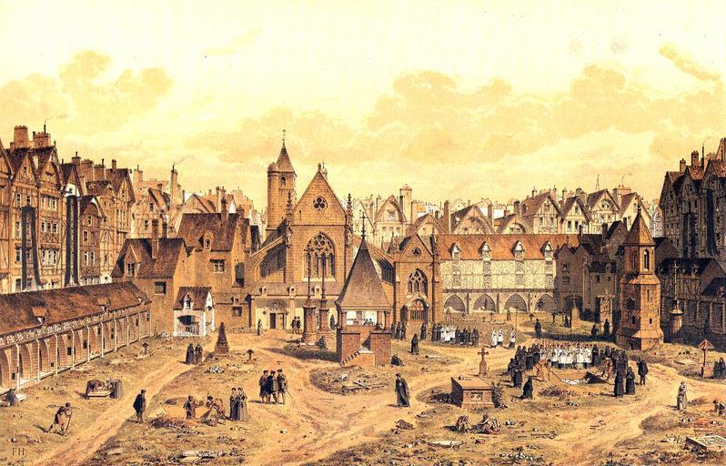 Keywords: Saints Innocents 1550 Hoffbauer NoFrame.jpg en Engraving depicting the Saints Innocents cemetery in Paris around the year 1550 without its frame Edited by User Nikthestoned original scan by Jebulon End of 19th century Theodor Hoffbauer thumb left With original frame 48 860776 2 347491 PD-100 Cimetière des Innocents Paris in the 16th century |