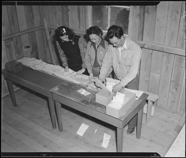Keywords: Salinas, California. Postal service has been established at this assembly center for evacuees of Ja . . . - NARA - 536175.jpg Scope and content The full caption for this photograph reads Salinas California Postal service has been established at this assembly center for evacuees of Japanese ancestry General notes 536175 Local identifier 210-G-A226 Department of the Interior War Relocation Authority 02/16/1944 - 06/30/1946 NARA-Author Albers Clem Photographer 8452194 <br /> Still Picture Records Section Special Media Archives Services Division NWCS-S National Archives at College Park 8601 Adelphi Road College Park MD 20740-6001 1942-03-31 Record group Record Group 210 Records of the War Relocation Authority 1941 - 1989 Record group ARC 537 Central Photographic File of the War Relocation Authority compiled 1942 - 1945 Series ARC 536000 File unit File unit ARC Variant control numbers NAIL Control Number NWDNS-210-G-A226 Other versions <gallery> File Salinas _California _Postal_service_has_been_established_at_this_assembly_center_for_evacuees_of_Ja_ _ _ _-_NARA_-_536175 tif tif File Salinas _California _Postal_service_has_been_established_at_this_assembly_center_for_evacuees_of_Ja_ _ _ _-_NARA_-_536175 jpg jpg </gallery> NARA-cooperation PD-USGov Salinas Assembly Center |