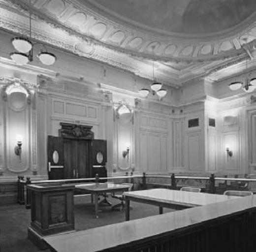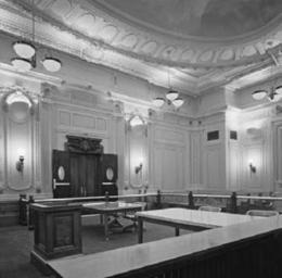 Keywords: Sconces keep focus on chandeliers.jpg en Quietly designed sconces maintain visual focus on the historic chandeliers and decorative finishes embellishing this historic courtroom 2012-04-24 http //www gsa gov/graphics/pbs/TechnicalGuideLightingFINAL2 pdf GSA PD-USGov Uploaded with UploadWizard GSA technical preservation guidelines |