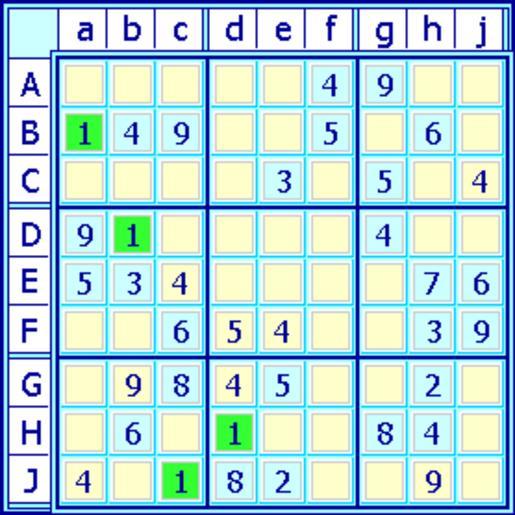 Keywords: Sdk ex03A1.gif Exemple de sudoku avec élimination indirecte étape a <br> Les étapes postérieures b c puis d correspondent aux images Image Sdk ex03A2 gif Image Sdk ex03A3 gif et Image Sdk ex03A4 gif <br> <br> Pour voir d'autres exemples analogues élimination indirecte cliquer ici Image Sdk ex03B gif et Image Sdk ex03C1 gif <br><br> Voir l'article Résolution d'un sudoku http //fr wikipedia org/wiki/Résolution_d'un_sudoku sur Wikipédia own date Papy77 Sudoku |