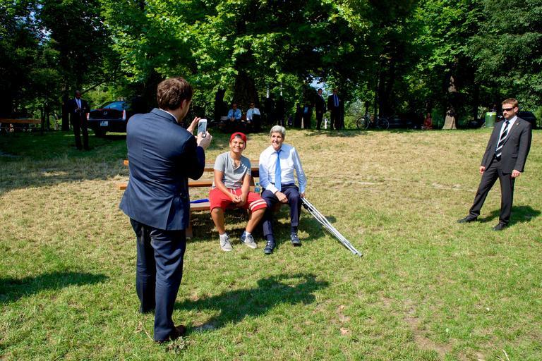 Keywords: Secretary Kerry Poses for a Photo With a Boy in a Park Whose Mom Had Been a Flight Attendant on an Austrian Airlines Flight the Secretary Took Last Year.jpg en During one break in the talks on July 1 2015 Secretary Kerry asked to go to a park A young boy who had been throwing a ball for his dog approached him and asked if he could get a photo with him The boy later explained that his mother had been a flight attendant on an Austrian Airlines flight the Secretary took last year after his Air Force plane broke in Vienna State Department photo/ Public Domain 2015-07-01 10 02 02 http //www flickr com/photos/9364837 N06/19669810361/ U S Department of State other versions 48 203854 16 366882 PD-USGov PD-USGov Uploaded with UploadWizard Relations of Iran and the United States Taken with Nikon D4S |